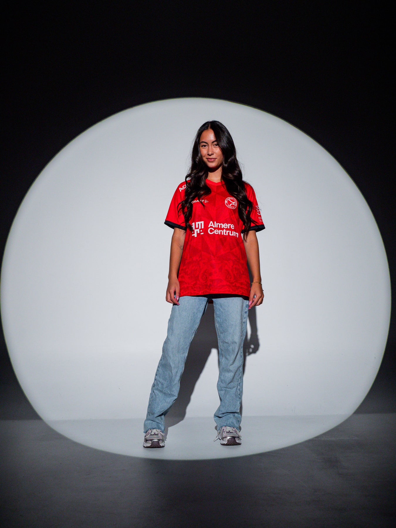 Rood. Zwart. Vol trots. Het nieuwe thuisshirt is een eerbetoon aan Almere en markeert een bijzonder jubileumseizoen waarin we samen met supporters, partners én inwoners de kracht van onze stad vieren. En nu ook voor de dames in Almere!