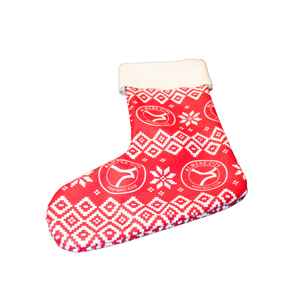 Met deze feestelijke Almere City FC kerstsok geef je jouw openhaard of woonkamer een echte rood-witte upgrade. Perfect om te vullen met kleine cadeautjes, of gewoon als sfeervolle decoratie tijdens de feestdagen.